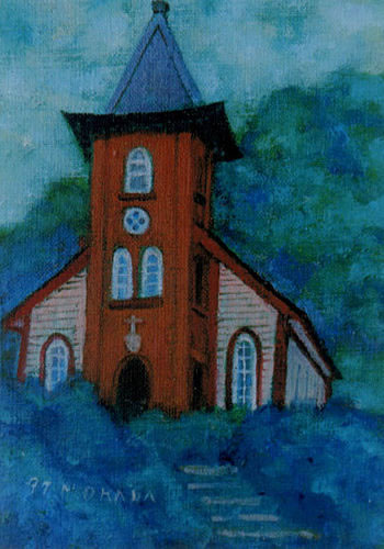 佐野原峠より2〜3km入った所にある山の中の教会である。内部はゴシック様式のきれいな教会である。